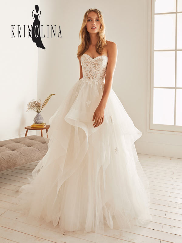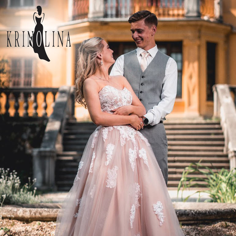 Krinolina je prava poročna galerija. Mogočen obokan prostor, ki že ob prvem vstopu pričara veličastnost dogodka, kakršen poroka je. Izbirate lahko med poročnimi, svečanimi, maturantskimi ter moškimi oblekami različnih blagovnih znamk.