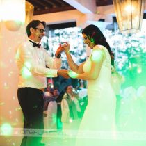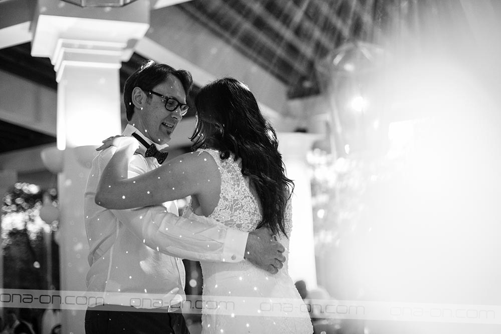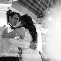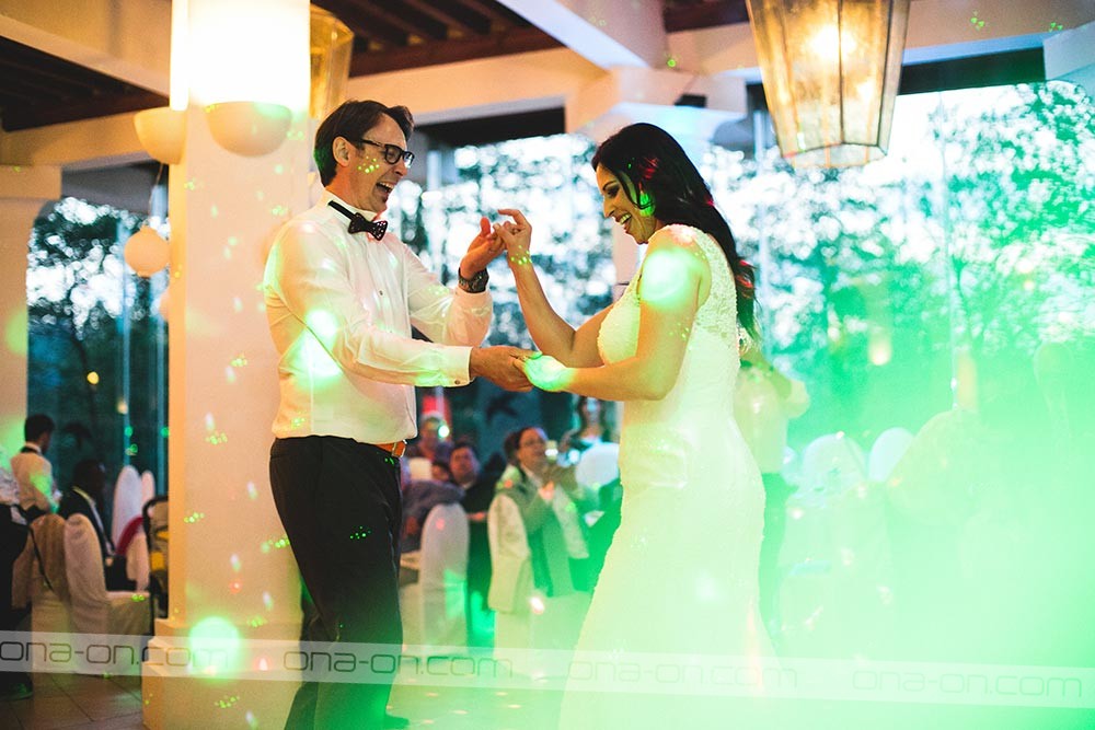Po spustu belih helijevih balonov in čestitkah vseh prisotnih je bil čas za poročno zabavo. Po prvem okrepčilu sta novopečena mož in žena otvorila plesišče – navdušila sta z živahno plesno koreografijo, ki sta jo pilila v plesni šoli La Bolita.
