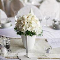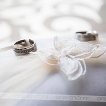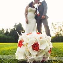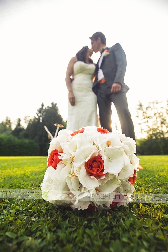 Nevesta se je do svojega ženina s poročnim šopkom v belo-oranžni kombinaciji, ki so ga skupaj s preostalo cvetlično dekoracijo pripravili v Vrtnem centru Gašperlin, sprehodila v družbi očeta, nato pa je skupaj z bodočim možem stopila proti matičarju.