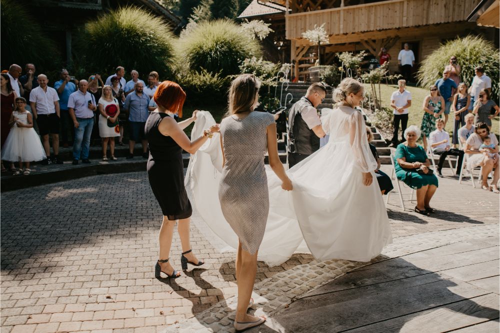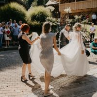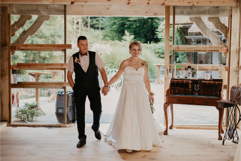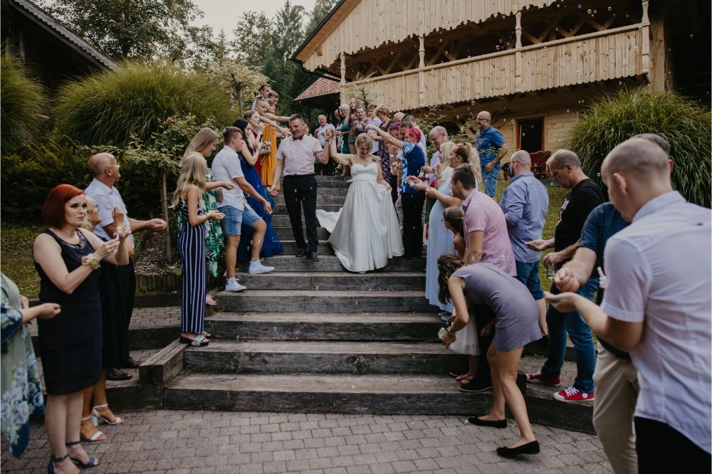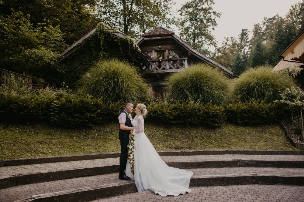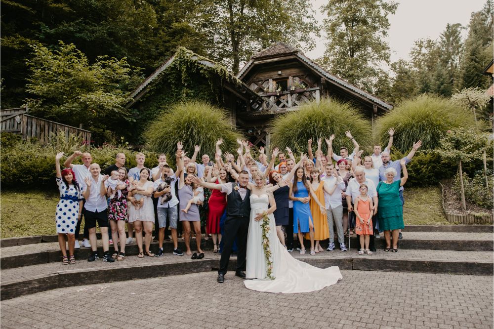 Bilo je super! Svatje so se zbrali na lokaciji, kulinarika in ambient v izvedbi Hiše Lisjak sta bila vredna vseh pohval. Nevesta se je, medtem, ko se je dobro vzdušje stopnjevalo, urejala v pravljični hiški ob jezeru.
