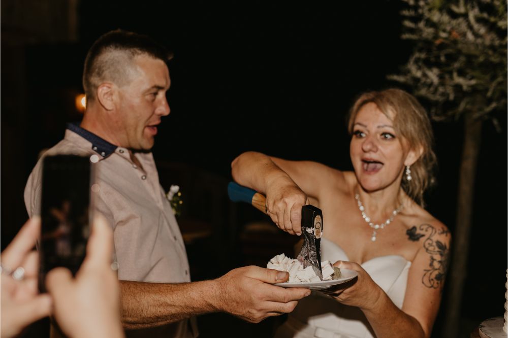 Slavje se je nadaljevalo z druženjem in s pogostitvijo zunaj. Po prihodu v dvorano je sledil zelo čustven in hkrati zanimiv zahvalni govor neveste, ki ga je spremljala glasba. Energija med mladoporočencema je zavzela okolico.