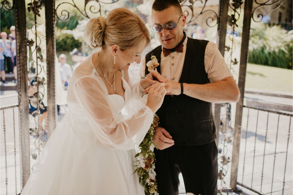 Osma Sanjska ona-on poroka: Pravljična, čustvena, romantična in v znamenju dobre družbe. Poročila sta se Karmen in Janez, par, ki se je spoznal na ona-on.com.