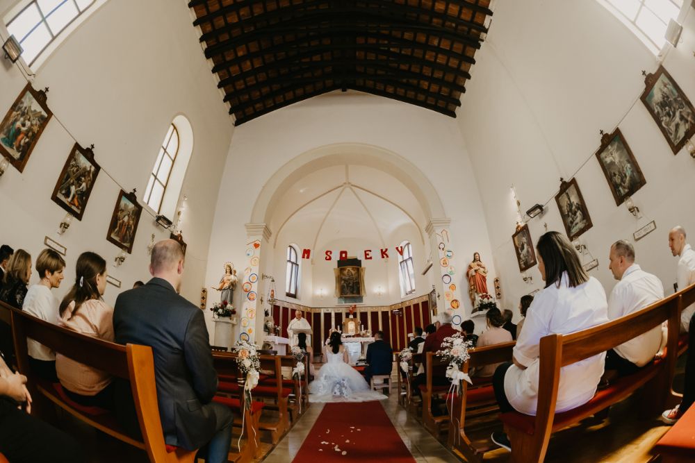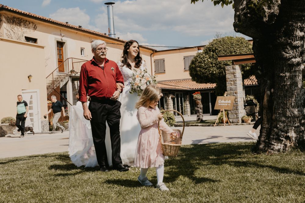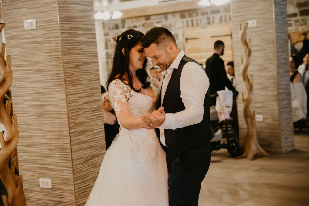 Nevesto je k oltarju v cerkvi pospremila babica, na civilnem obredu pa oče, kar je bilo nadvse ganljivo. Da sta varno prispela od ene do druge poročne lokacije, je poskrbel njun prijatelj, a ne le to – s svojimi zabavnimi vložki je svate nasmejal in jih spravil v dobro voljo. Po uradnem delu (cerkveni in civilni obred) je sledila pogostitev in zabava do jutra.
