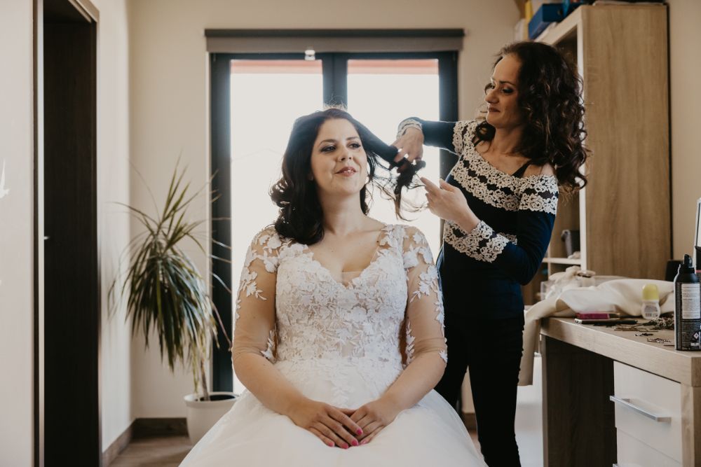 Ženin in nevesta sta izgledala naravnost čudovito. Sijala sta od veselja, pričakovanja in pozitivne energije. Ko sta oblekla svoji poročni obleki in ko sta bila Marinkin make up in frizura nared, je bilo vse pripravljeno, da se dan začne zares.